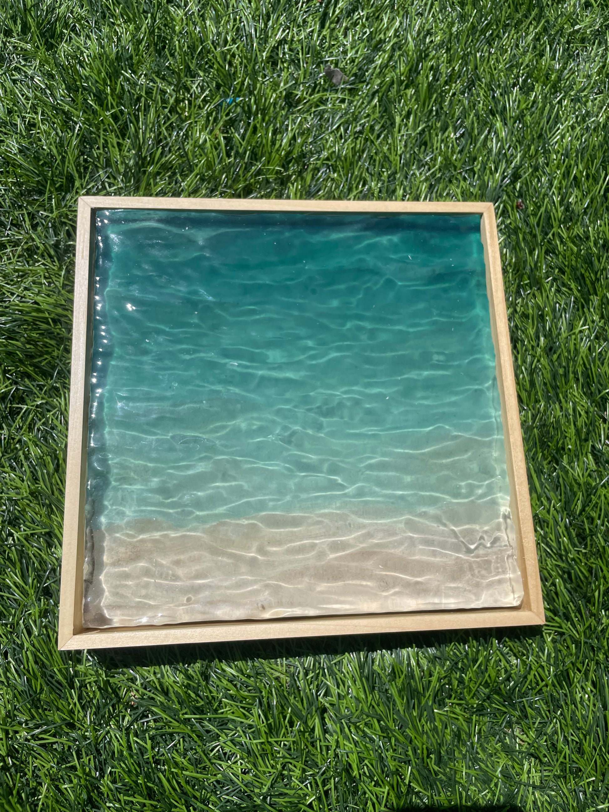 Elegantly hand-carved from layered resin and natural sand, each piece is set in a custom-crafted poplar frame. UV and weather resistant for lasting beauty. Meticulously handcrafted in San Diego, CA.